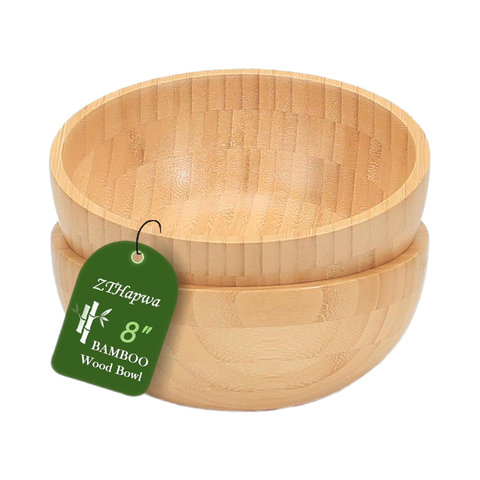 Large 12'' Bamboo Salad Bowl 100 oz Kitchen Counter Wooden Serving Bowls for Fruit Farmhouse Decorative Dish Home